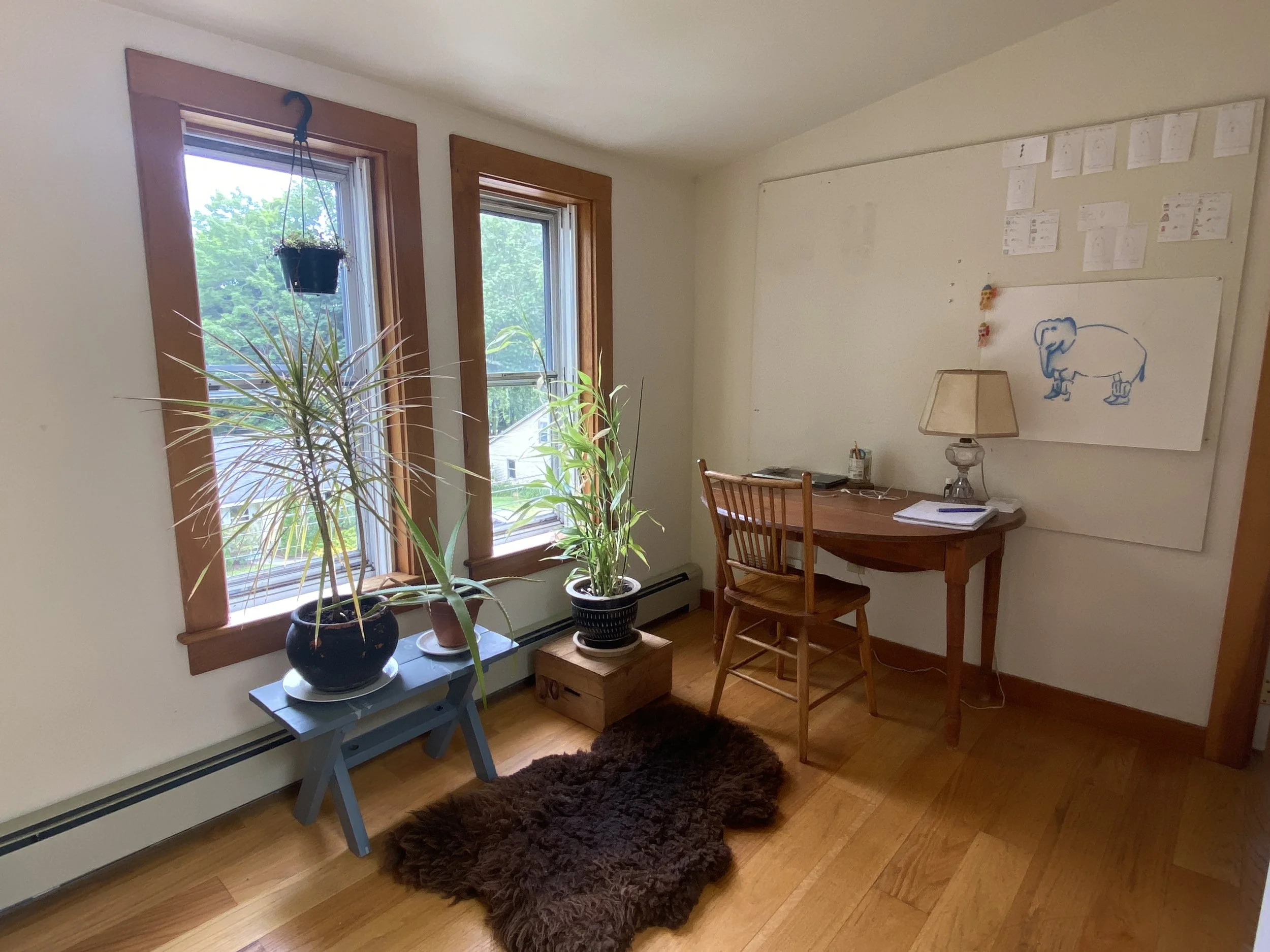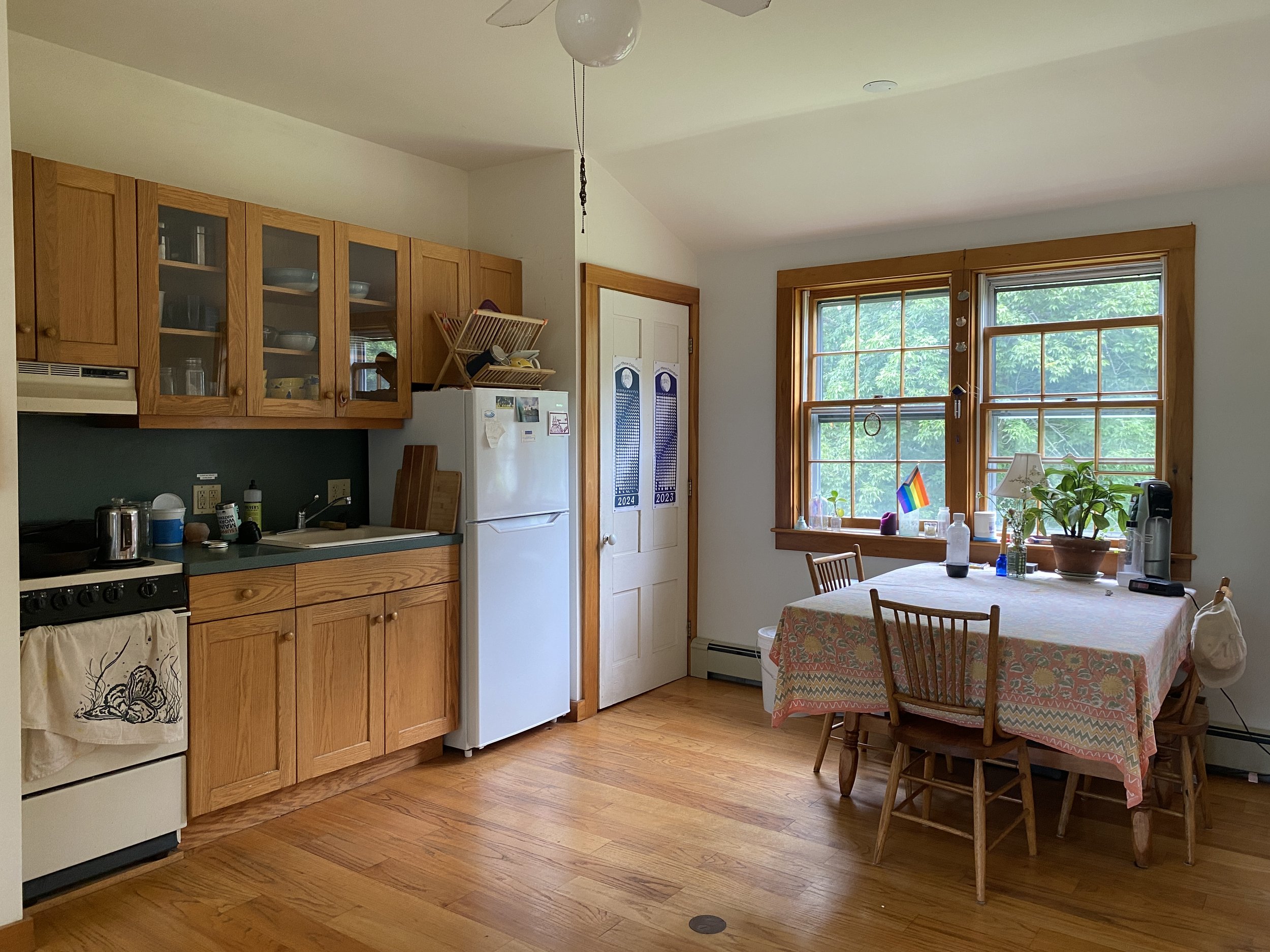 Beautiful, light-filled in-town studio in a quiet neighborhood in Camden, ME. Featuring a bathroom with a huge skylight making it feel like an outdoor shower, kitchen and living area, a small office space, an extra storage room (not pictured), and a wall of closets in the bedroom. 8-minute walk to the library and harbor. 3 minute walk to Mt. Battie Trailhead. 5-minute drive to Barrett’s Cove on Lake Megunticook. This gem of an apartment feels like a treehouse in summer under the shade of a giant ash tree and in the winter there are partial views of the bay. Views of Mt Battie year round. $1000/mo. Heat & hot water included. 1 car off-street parking. Owner-occupied. No pets or tobacco. Available Sept 1.